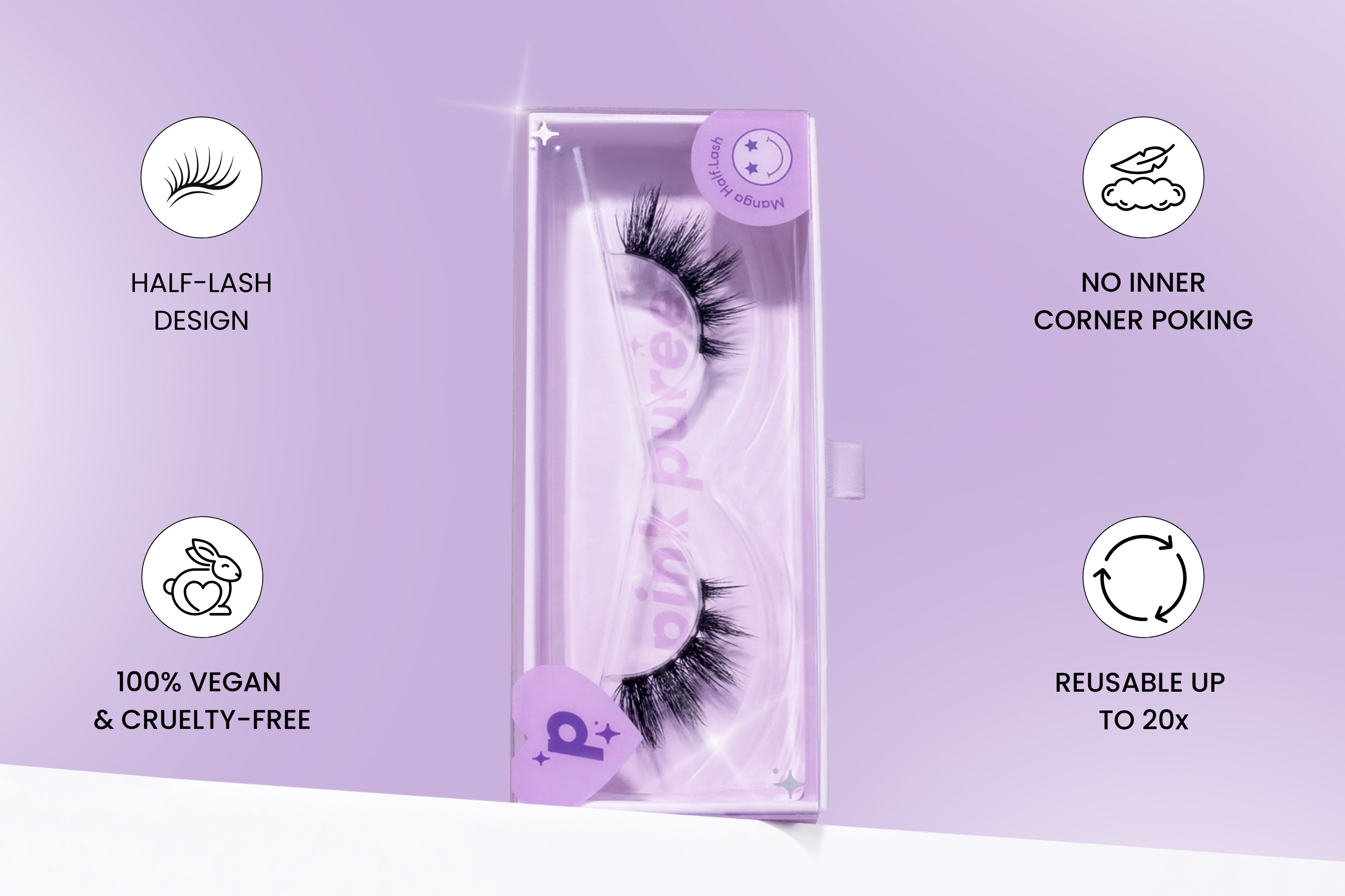 Discover the Manga Muse Collection—unique 3/4 "half lash" designs that lift and define with a lightweight, comfortable feel, perfect for sensitive eyes.
